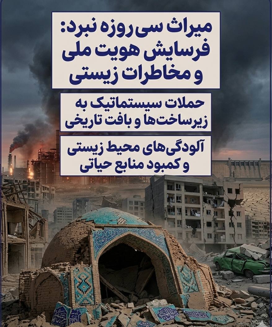 در کنار فجایع انسانی، میراث فرهنگی و هویت تاریخی ایران نیز در این سی روز زیر آتش سنگین، با تهدیدی جبرانناپذیر روبرو شده است. اصابت پرتابهها به بافتهای تاریخی در شهرهایی نظیر اصفهان و تبریز و لرزههای ناشی از انفجارهای سنگین در نزدیکی محوطههای باستانی، میراثی را که هزاران سال پیونددهنده نسلهای این سرزمین بوده، در معرض نابودی قرار داده است. از دست رفتن این بنمایههای فرهنگی، در کنار بومکشی (Ecocide) گسترده ناشی از نشت مواد شیمیایی و نفتی، در حقیقت حمله به “آینده” ایران است. آلودگی سفرههای آب زیرزمینی و نابودی اکوسیستمهای محلی، امنیت غذایی و سلامت مادران و نسلهای آتی را با مخاطرهای روبرو کرده که فراتر از معادلات نظامی، یک جنایت ماندگار علیه زیستبوم و تاریخ یک ملت محسوب میشود.